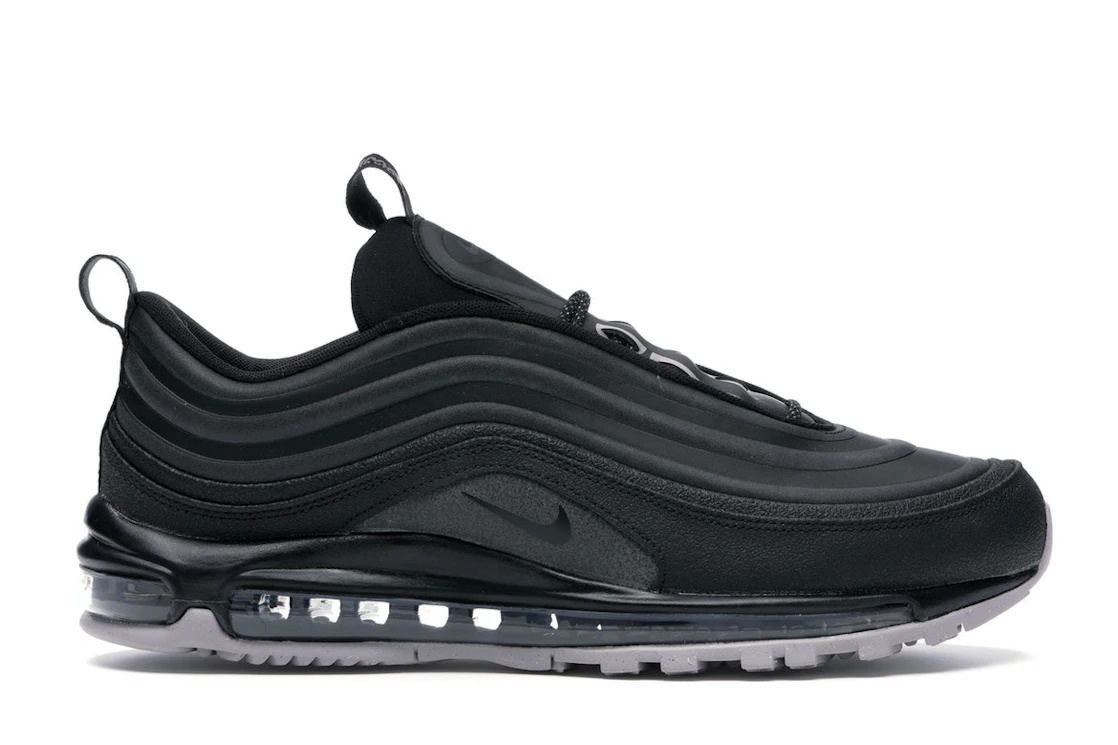 The Nike Air Max 97 Utility Black Cool Grey adopts a winter theme, and its design cue strives to follow the "Durable, Traction, Visibility" mantra. On its durable grey rubber outsole, the Nike Air Max 97 has glittering speckles for increased visibility. Its mudguard has a solid construction with a rough leather finish in black. The upper is waterproofed, with grey-toned synthetic materials appearing in between concentric black textiles. A sophisticated lacing system featuring reflective laces, webbing on the eyelets, and additional support from plastic hoops on the tongue is in place. The swoosh appears on the quarter panels, while the heel tab has WNTR UTLTY branding and the DURABLE TRACTION VISIBILITY mantra in print. What do StockX experts think about this sneaker? We like the 3m tints on the laces and tongue outline, which make the shoe stand out. The one-piece upper with a waterproof shell construction also ticks a box on our checklist. Released on October 1st, 2019, the Nike Air Max 97 Utility Black Cool Grey had a price of $175. - Style BQ5615-001 - Colorway Black/Cool Grey - Retail Price 175 - Release Date 2019-10-01 - Featured false - Product Line Nike Air Max