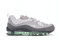 The Nike Air Max 98 Vast Grey Fresh Mint is a general release and part of the Air Max 98 line. The Nike Vast Grey Fresh Mint has an upper that features a mix of materials, including leather and textile, and is designed in a mix of gray and mint-green hues. The sneaker boasts an Air Max design with an Air Max unit in the sole for cushioning and an outsole that is made of rubber to provide traction on different surfaces. The shoe also has a lace-up closure system that offers a secure and customizable fit. The Nike Air Max 98 Vast Grey Fresh Mint was released on May 19th, 2019, at a retail price of $160. - Style 640744-011 - Colorway Vast Grey/Fresh Mint-Atmosphere Grey - Retail Price 160 - Release Date 2019-05-19 - Featured false - Product Line Nike Air Max