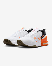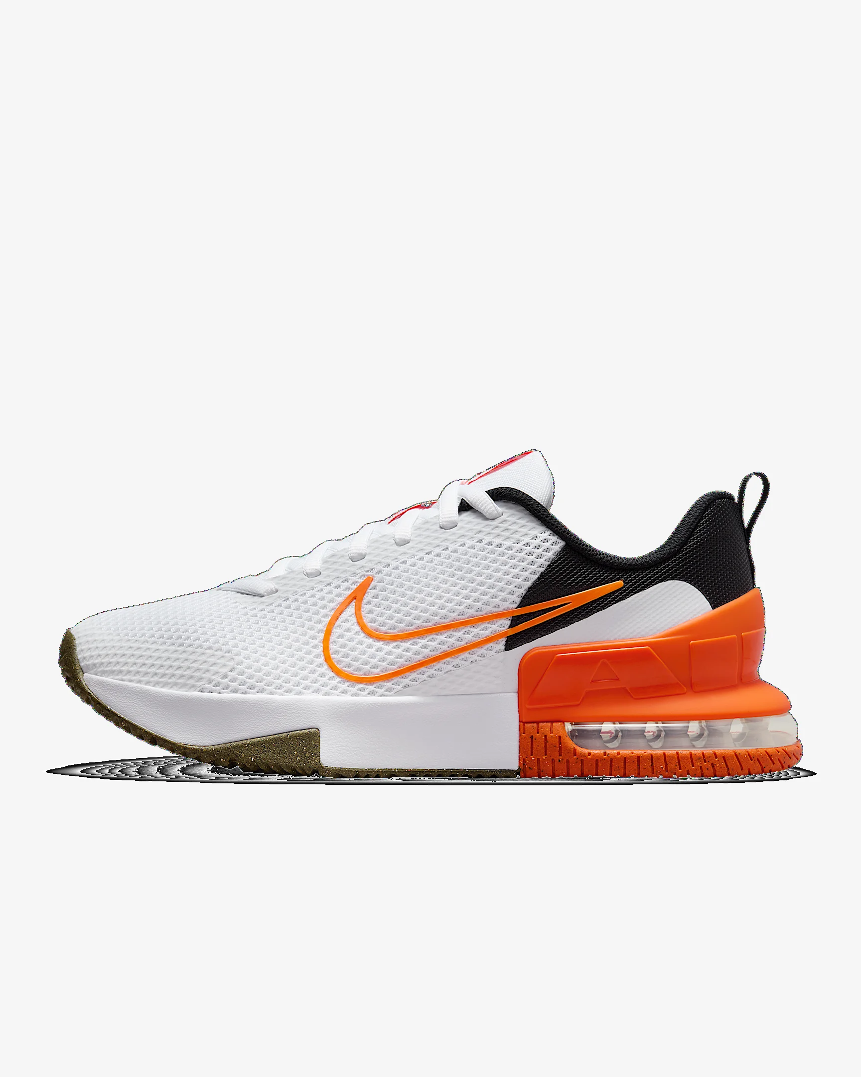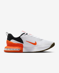 The Air Max Alpha Trainer 6 brings sturdiness and comfort, the best of both worlds, to your toughest workouts. A flat, wide base helps keep you from sinking, so you can set and hit your goals. The robust heel, boosted by visible "performance Air" cushioning, offers dependable stability when digging deep for one more rep. Product Details - Shown: White/Black/Safety Orange - Style: FQ1833-109 SIZE & FIT Fits small; we recommend ordering a half size up