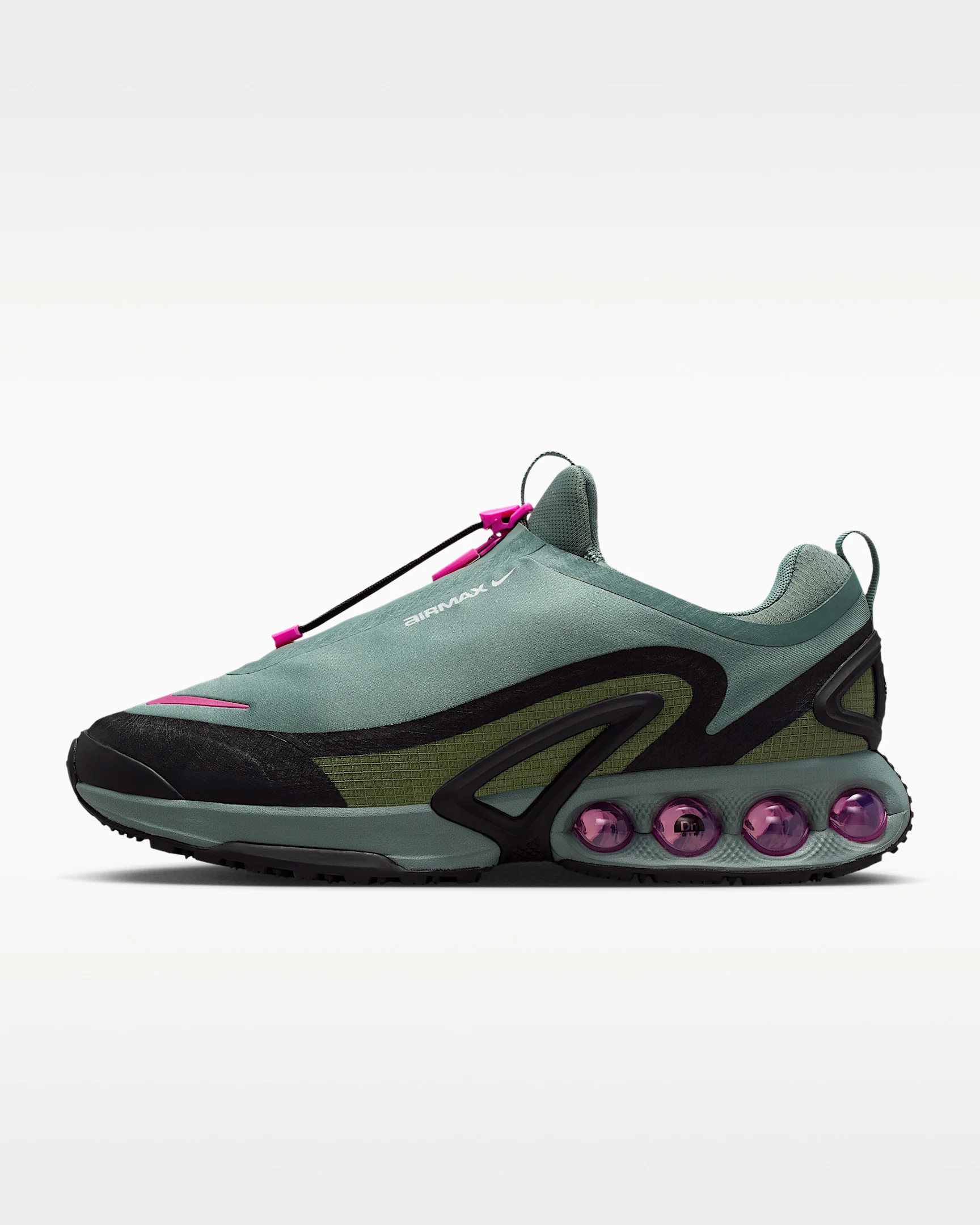 Hit the streets with confidence in this weatherized rendition of the Air Max Dn. While maintaining its Dynamic Air unit cushioning system, we added a water-repellent zip-up shroud and Nike Storm Tread for reliable coverage and traction. Product Details - Pull tabs - Reflective branding - Shown: Clay Green/Sky J Light Olive/Black/Fire Pink - Style: HQ8605-300