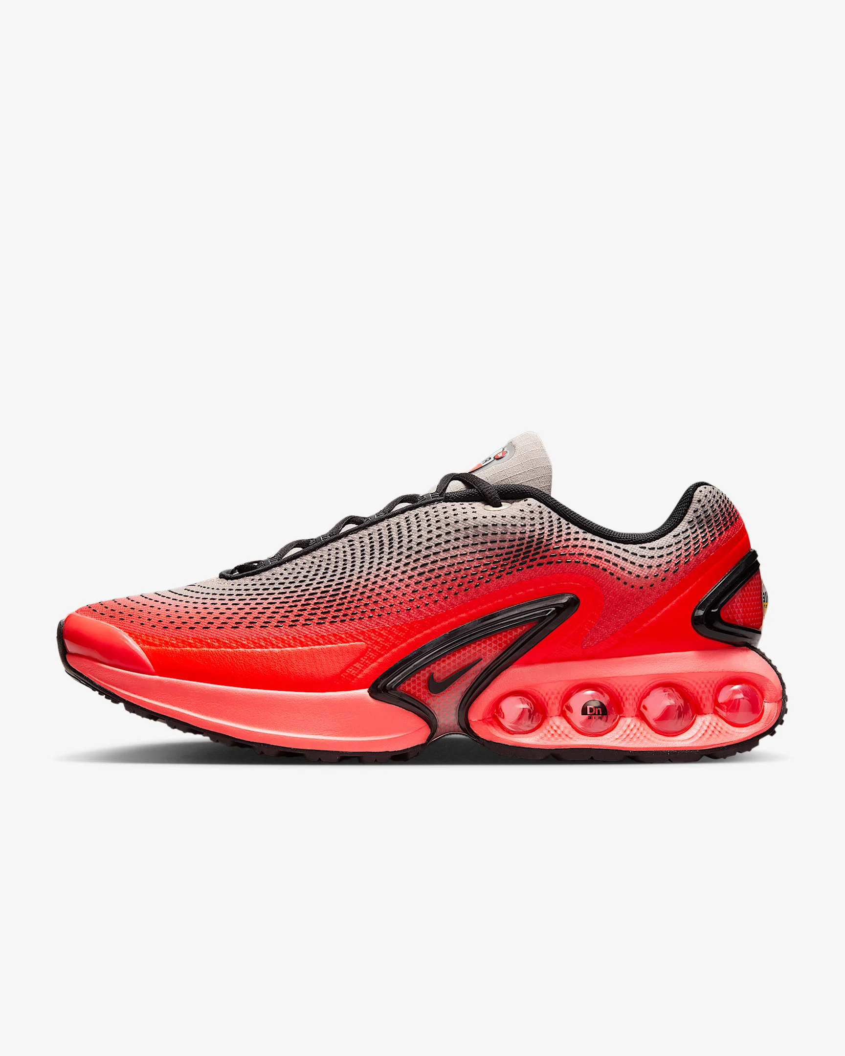 The Air Max Dn features our Dynamic Air unit system of dual-pressure tubes, creating a responsive sensation with every step. This results in a futuristic design that’s comfortable enough to wear from day to night. Plus, this version sports a gradient treatment on the upper. Go ahead—feel the unreal. Product Details - Matte accents - Foam midsole - Rubber outsole - Shown: College Grey/Bright Crimson/Black - Style: HF5531-002