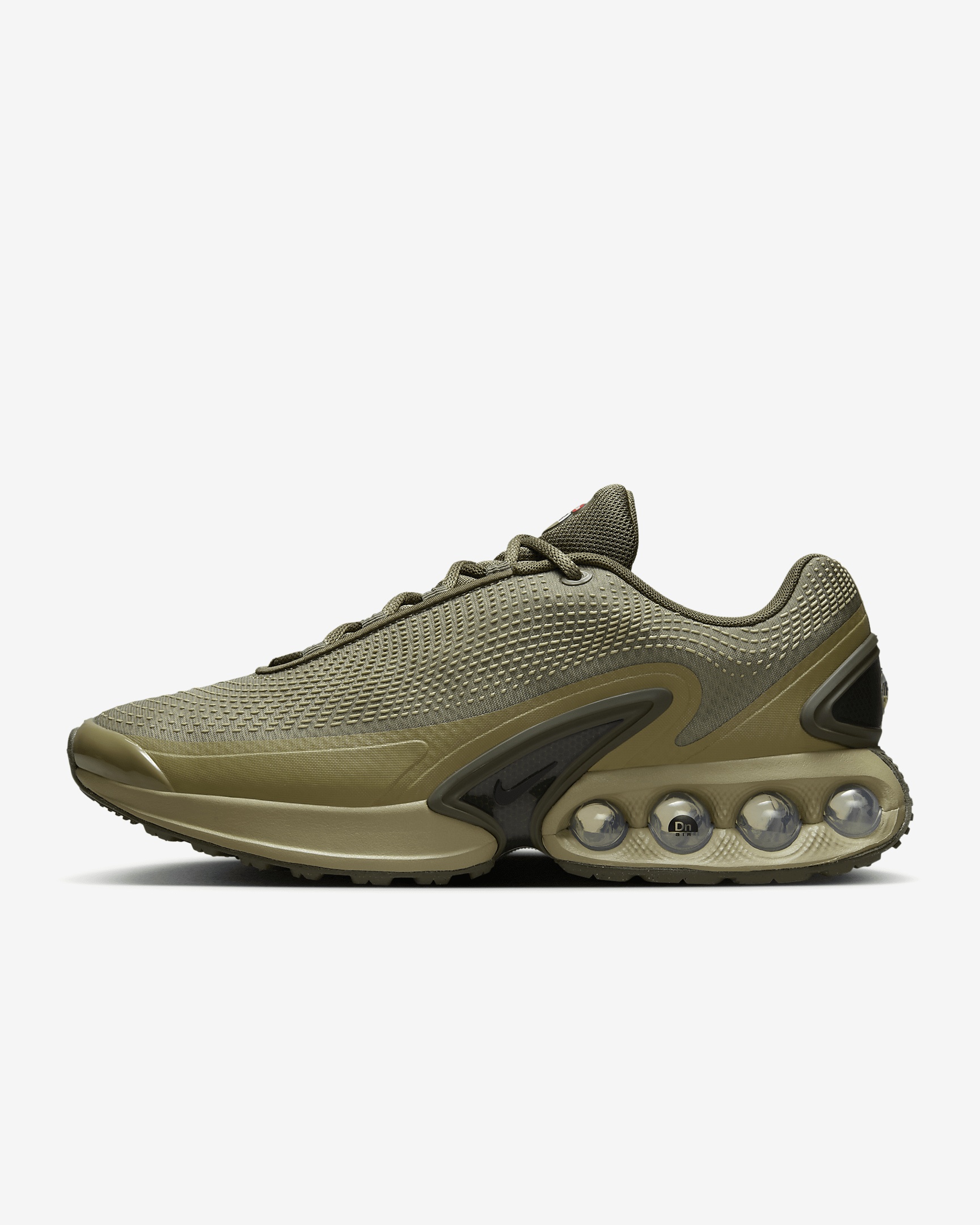 Say hello to the next generation of Air technology. The Air Max Dn features our Dynamic Air unit system of dual-pressure tubes, creating a reactive sensation with every step. This results in a futuristic design that’s comfortable enough to wear from day to night. Go ahead—Feel the Unreal. Product Details - Matte accents - Foam midsole - Rubber outsole - Not intended for use as Personal Protective Equipment (PPE) - Shown: Medium Olive/Neutral Olive/Cargo Khaki/Black - Style: DV3337-201
