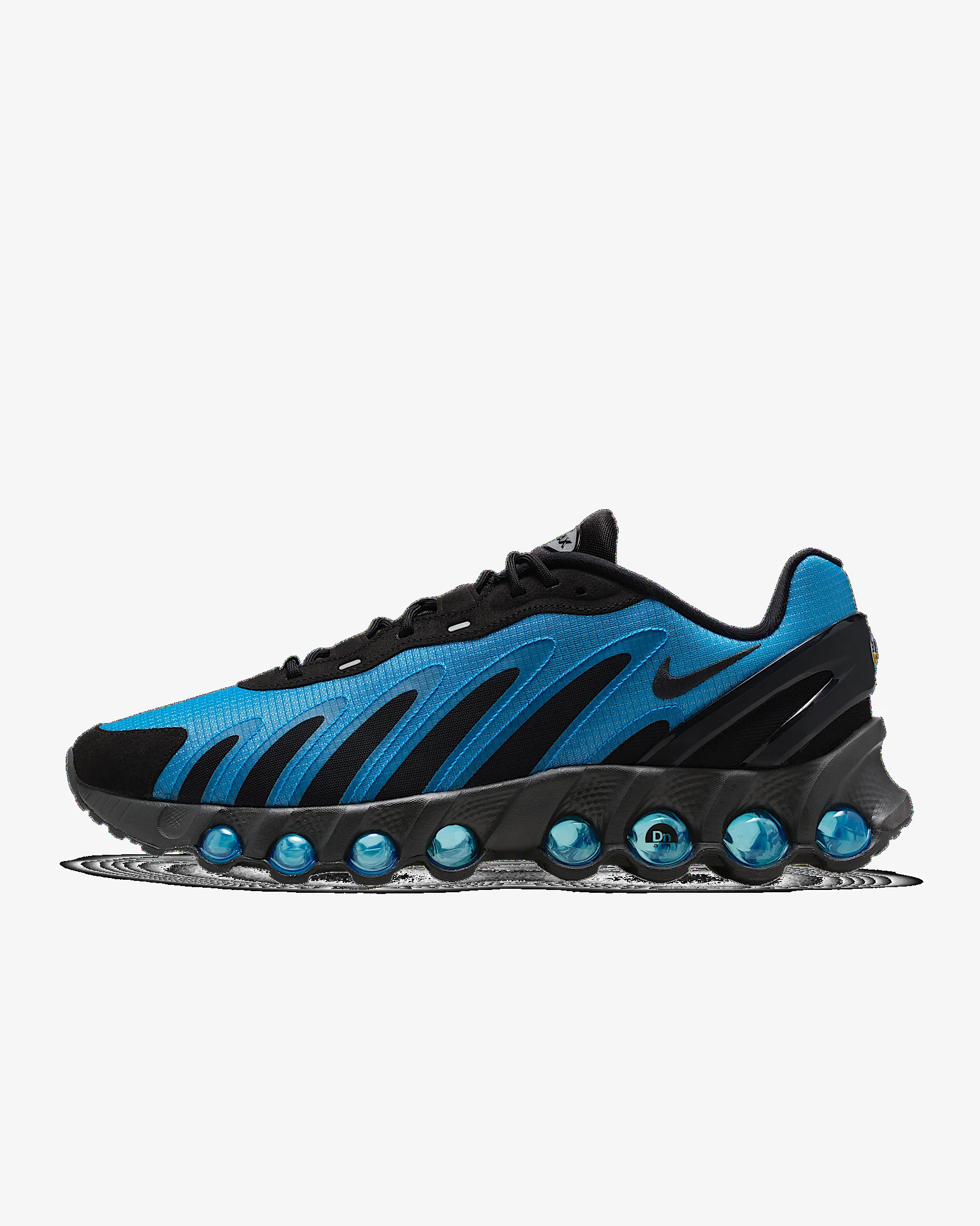 More Air, less bulk. The Dn8 takes our Dynamic Air system and condenses it into a sleek, low-profile package. Powered by eight pressurized Air tubes, it gives you a responsive sensation with every step. Enter an unreal experience of movement. More Benefits - Plastic heel clip helps hold your foot down for more containment. - Extra layer across toe tip adds durability. Product Details - Foam midsole - Rubber outsole - Shown: Photo Blue/Vivid Orange/Black - Style: HV4525-400