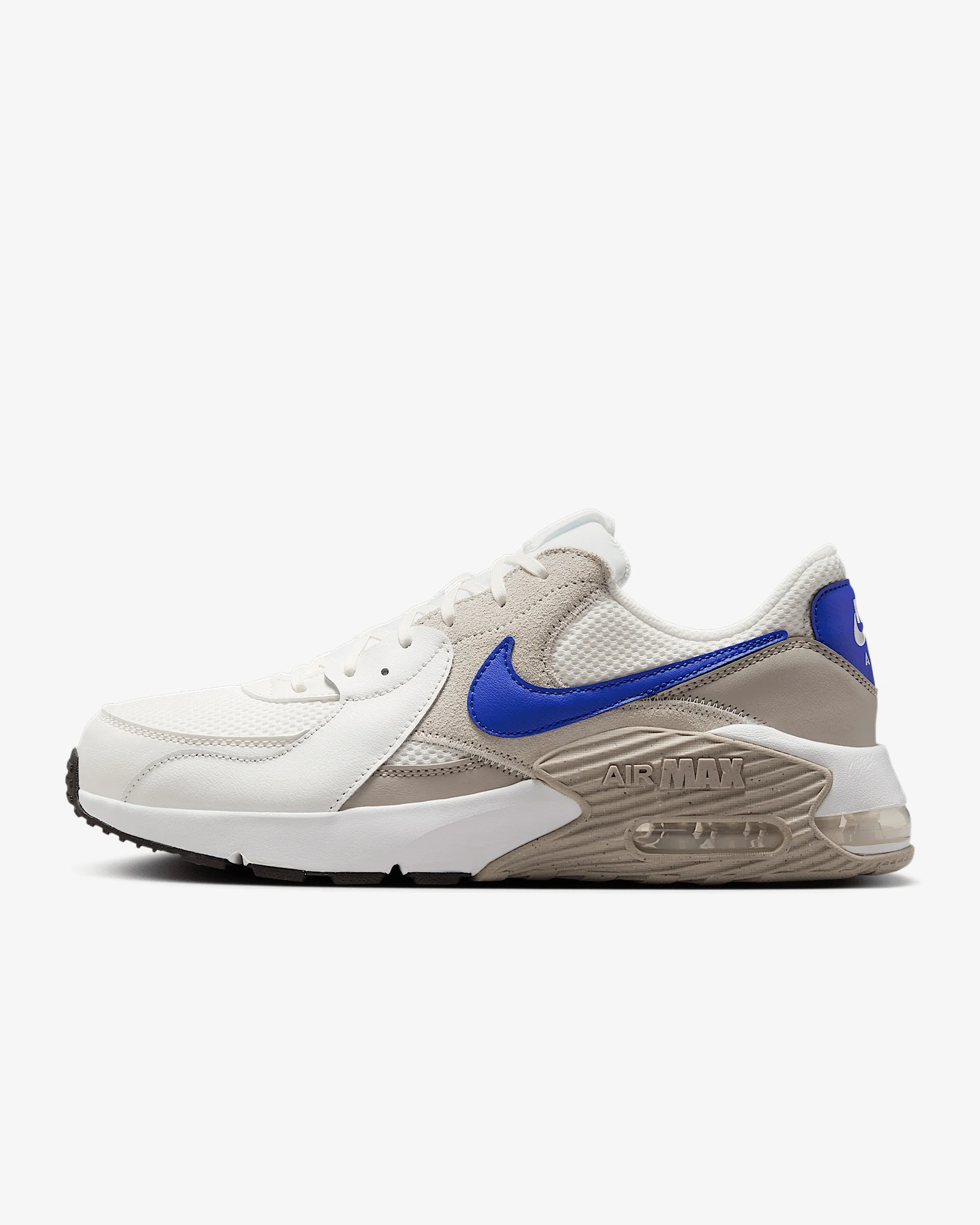 Get into the groove with the Nike Air Max Excee, with subtle pops of fresh color for style that defies time. Inspired by the Nike Air Max 90, these kicks deliver a modern twist on a legendary icon through elongated design lines and distorted proportions. Benefits - Max Air unit adds optimal cushioning and is visible through three windows for a truly modern look. - Elongated design lines honor the Air Max 90 while modernizing these kicks in a fresh way. - Stitched overlays add heritage styling and durability. - Padded, low-cut collar looks sleek and feels comfortable. Product Details - Foam midsole - Rubber outsole - Shown: Summit White/Vast Grey/College Grey/Racer Blue - Style: FZ5486-101