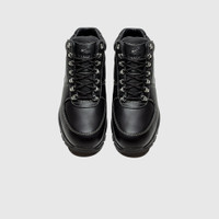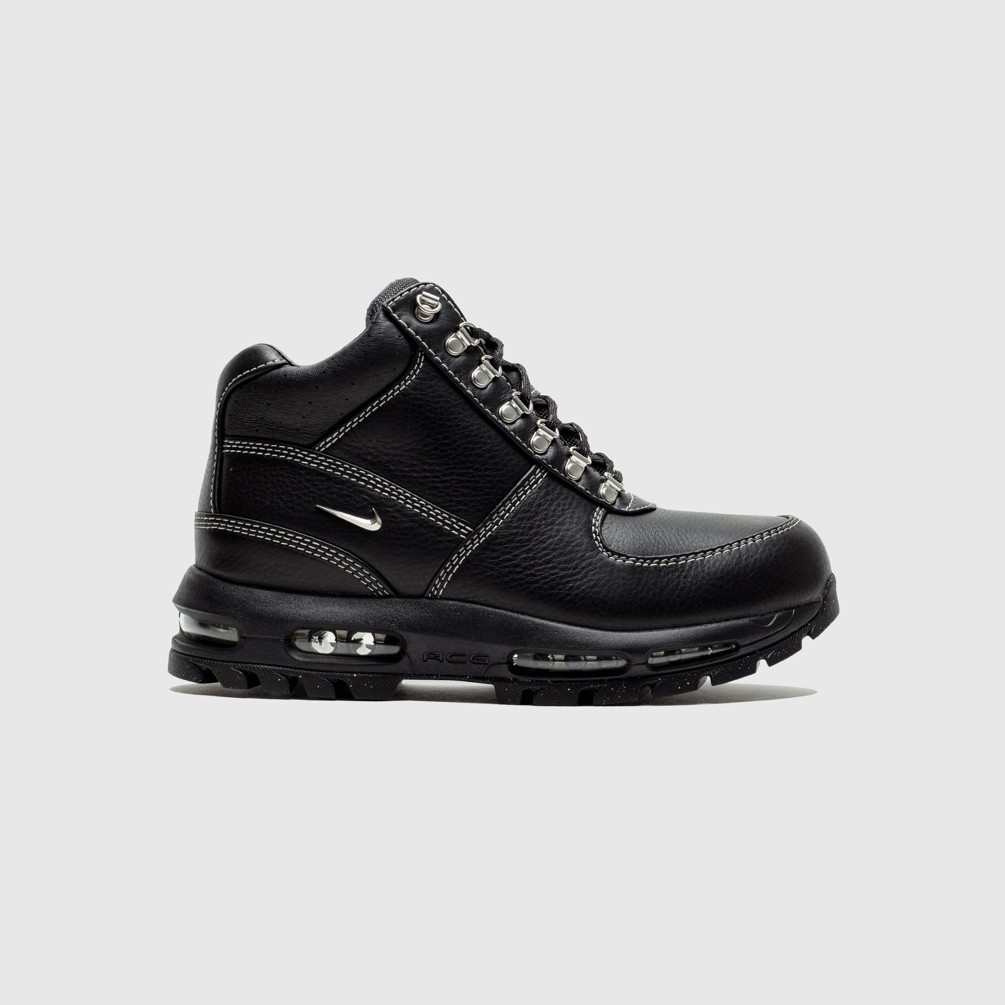 - HF5306 001 - Black/Black-Off Noir-Vast Grey - Black leather upper - Black mesh tongue with a leather branded tongue tag - Metallic D-ring lacing system - Black perforated leather padded collar - Metallic swoosh on the lateral and medial side wall - Contrast stitching throughout - Black soft foam midsole wth air units - Black rubber oursole