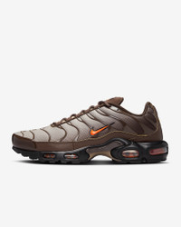 Let your attitude have the edge in the Air Max Plus. Its iconic caging adds heat to your look while airy mesh keeps you cool. And the visible cushioning lets you celebrate your defiant style in comfort. Benefits - Mesh upper with synthetic leather accents is durable and breathable. - Midfoot arch provides a supportive feel. - Originally designed for performance running, Nike Air units provide lightweight cushioning. - Rubber outsole gives you durable traction. Product Details - Not intended for use as Personal Protective Equipment (PPE) - Shown: Baroque Brown/Khaki/Black/Safety Orange - Style: DM0032-200 SIZE & FIT Fits small; we recommend ordering a half size up