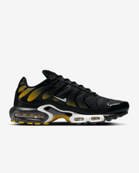 Let your attitude have the edge in the Air Max Plus. Its iconic caging adds heat to your look while airy mesh keeps you cool. And the visible cushioning lets you celebrate your defiant style in comfort. Benefits - Mesh upper with synthetic leather accents is durable and breathable. - Midfoot arch provides a supportive feel. - Originally designed for performance running, Nike Air units provide lightweight cushioning. - Rubber outsole gives you durable traction. Product Details - Not intended for use as Personal Protective Equipment (PPE) - Shown: Black/University Gold/White - Style: DM0032-013 SIZE & FIT Fits small; we recommend ordering a half size up