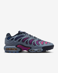 Let your attitude have the edge in the Air Max Plus Drift, a "tuned" Air experience that offers premium stability and cushioning. Featuring airy mesh, gradient coloring and the original wavy design lines, it celebrates your defiant style. Benefits - Upper combines mesh and synthetic materials for breathability and durability. - Originally designed for performance running, Nike Air units provide lightweight cushioning that lasts. - Bringing beach life to the city, the supportive arch draws inspiration from a whale's tail while the wavy lines nod to palm trees and ocean waves. Product Details - Foam midsole - Rubber outsole - Shown: Ashen Slate/Obsidian/Hyper Pink/Vivid Purple - Style: FD4290-401 SIZE & FIT Fits large; we recommend ordering a fl size down
