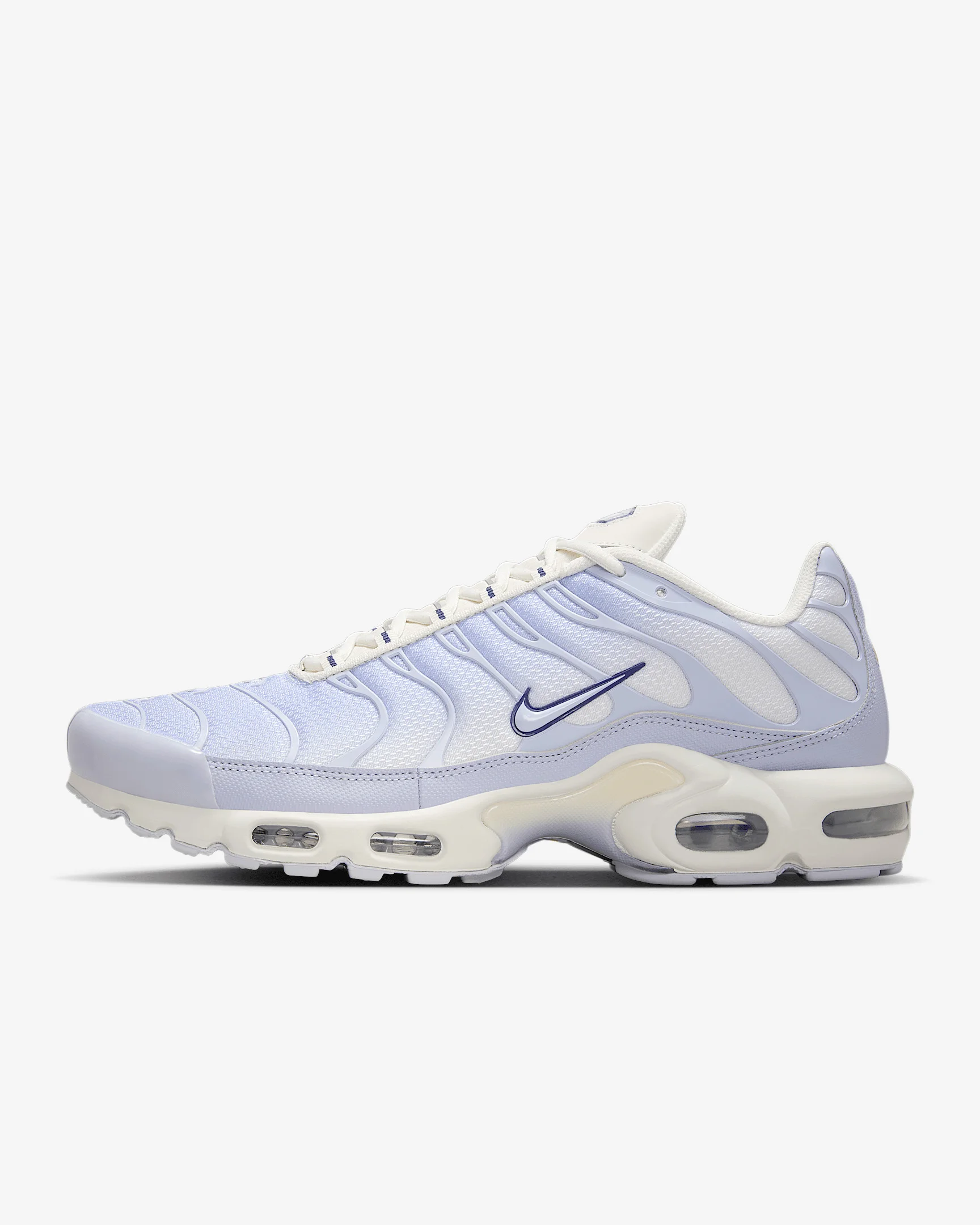 Let your attitude have the edge in the Air Max Plus. Its iconic caging adds heat to your look while airy mesh helps keep you cool. And the visible cushioning lets you celebrate your defiant style in comfort. Benefits - Mesh upper with synthetic leather accents is durable and breathable. - Midfoot arch provides a supportive feel. - Originally designed for performance running, Max Air units provide lightweight cushioning that lasts. - Rubber outsole gives you durable traction. Product Details - Foam midsole - Reflective details - Not intended for use as Personal Protective Equipment (PPE) - Shown: Phantom/Sanded Purple/Metallic Silver/Ghost - Style: IH0269-030