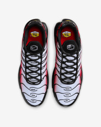 Let your attitude have the edge in the Air Max Plus. Its iconic caging adds heat to your look while airy mesh keeps you cool. And the visible cushioning lets you celebrate your defiant style in comfort. Benefits - Mesh upper with synthetic leather accents is durable and breathable. - Midfoot arch provides a supportive feel. - Originally designed for performance running, Nike Air units provide lightweight cushioning. - Rubber outsole gives you durable traction. Product Details - Not intended for use as Personal Protective Equipment (PPE) - Shown: Pure Platinum/University Red/Black/White - Style: DM0032-017 SIZE & FIT Fits small; we recommend ordering a half size up