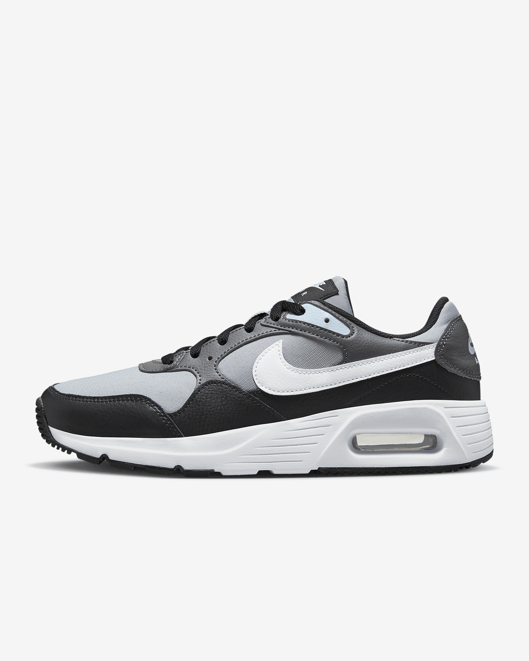 With its easy going lines, heritage track look and of course, visible Air cushioning, the Nike Air Max SC is the perfect finish to any outfit. The rich mixture of materials adds depth while making it a durable and lightweight shoe for everyday wear. Benefits - Real and synthetic leather combine with mesh for a durable construction that's breathable and comfortable to wear all day. - Originally designed for running, the Max Air unit delivers lightweight cushioning with every step. - The foam midsole adds cushioning to last. - The rubber outsole provides traction and durability. Product Details - Traditional lacing - Flex grooves in sole let your foot move naturally - Shown: Black/Iron Grey/Blue Tint/White - Style: CW4555-013