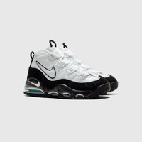 - 311090 100 - White/White-Black-Mystic Teal - 30 years after its release, Nike revisits the Air Max Uptempo 95 in an OG Mystic Teal colorway. - White leather upper - Black nubuck overlay - White mesh tongue - White embroidered "AIR SWOOSH" along the eyestay - White leather swoosh on the later back heel - Metallic "AIR UPTEMPO" branding on the back heel - Black rubber midsole with a Mystic teal full-length Max air unit - Black rubber outsole