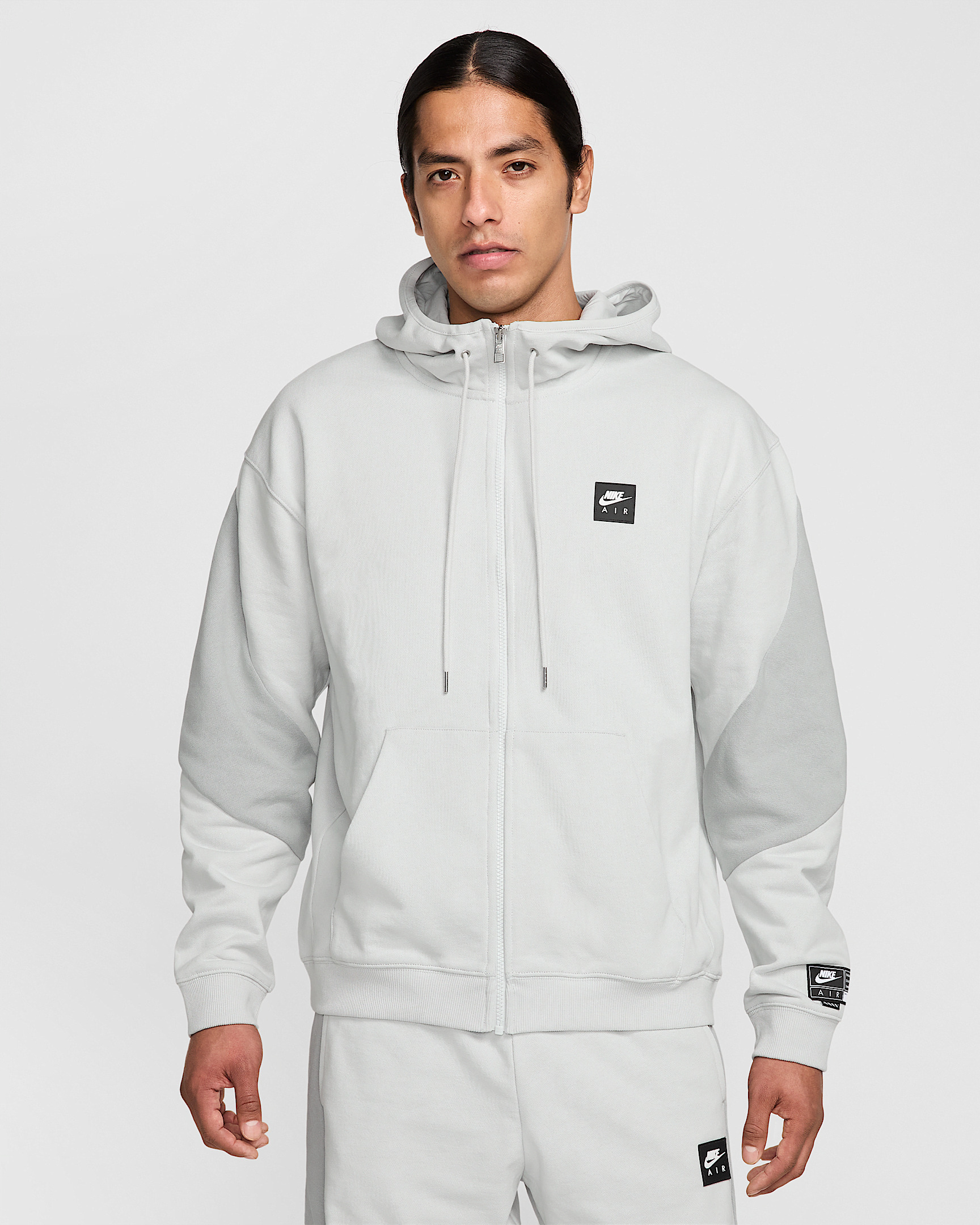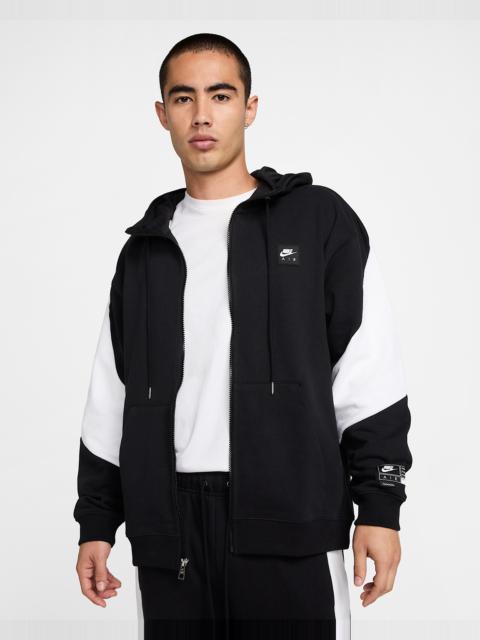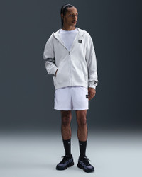 This rugged hoodie is constructed with a heavyweight fleece that looks worn in from day one. The hood is lined with smooth cotton jersey for comfort. Benefits - Designed to feel roomy through the body for easy movement and layering. - Binding around the hood adds structure and a scuba neck adds extra coverage. Product Details - Nike Air jock tag and silicone patch - Metal zipper - Metal grommets and drawcord tips - Body: 100% Cotton; Rib: 96% Cotton/4% Spandex; Hood Lining: 100% Cotton. - Machine wash - Imported - Shown: Photon Dust/Light Smoke Grey/Hyper Royal - Style: HJ0636-009 SIZE & FIT Model is wearing size M and is 6′1″185cm Loose fit: roomy and relaxed