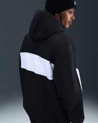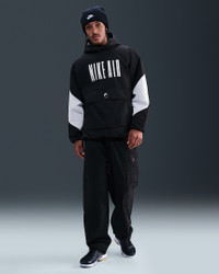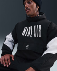This sport-inspired woven jacket has insulation to help keep you warm in cold conditions. Its loose fit feels roomy through the body for easy layering. Benefits - Style: Warm, hip-length jacket with loose fit - Materials: Cotton fabric, polyester lining and synthetic fill - Construction: Pullover style with elastic hem and cuffs - Storage: Large pouch pocket with snap closure - Trim: Hood with drawcord and cord lock - Perks: Embroidered center-front logo Product Details - Body: 100% cotton. Lining: 100% polyester. Fill: 100% polyester. - Machine wash - Imported - Shown: Black/White - Style: IB2769-010 SIZE & FIT Model is wearing size M and is 6′1″185cm Loose fit: roomy and relaxed