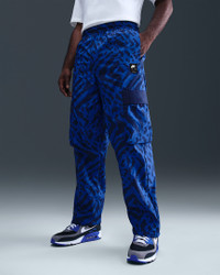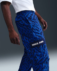 These premium pants are crafted with lightweight, swishy material and a roomy fit—just like the vintage versions. Water-repellent finish helps keep you dry in wet weather. Benefits - The loose fit feels roomy through the seat, thighs and legs for easy movement and casual styling. - An interior mesh lining adds breathable comfort. - Snap-closure cargo pockets let you carry your essentials. - Adjustable ankles let you switch up the fit around your shoes. Product Details - Elastic waistband with drawcord - Embroidered Nike Air logo - Silicone Nike Air patch - Body/Lining: 100% polyester - Machine wash - Imported - Shown: Game Royal/Blue Void/Black - Style: HQ9468-480 SIZE & FIT Model is wearing size M and is 6′2″188cm Loose fit: roomy and relaxed
