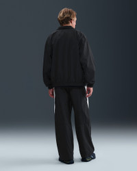 These premium track pants are crafted with water-repellent, swishy fabric and a breathable mesh lining. A roomy, straight-leg fit keeps the comfort flowing all day. Benefits - Loose-fit design with straight legs offers plenty of room for movement through the seat and thighs. - An interior mesh lining adds breathable comfort. - A vertical zippered back pocket pairs with side hand pockets for convenient storage. - An elastic waistband and internal drawcord deliver a comfortable, custom fit at the waist. Product Details - Body: 100% nylon. Lining: 100% polyester. - Machine wash - Imported - Shown: Black/White/White - Style: HV0874-010 SIZE & FIT Model is wearing size M and is 6′1″185cm Loose fit: roomy and relaxed