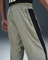 These premium track pants are crafted with water-repellent, swishy fabric and a breathable mesh lining. A roomy, straight-leg fit keeps the comfort flowing all day. Benefits - Loose-fit design with straight legs offers plenty of room for movement through the seat and thighs. - An interior mesh lining adds breathable comfort. - A vertical zippered back pocket pairs with side hand pockets for convenient storage. - An elastic waistband and internal drawcord deliver a comfortable, custom fit at the waist. Product Details - Body: 100% nylon. Lining: 100% polyester. - Machine wash - Imported - Shown: Light Army/Black/Black - Style: HV0874-320 SIZE & FIT Model is wearing size M and is 6′1″185cm Loose fit: roomy and relaxed