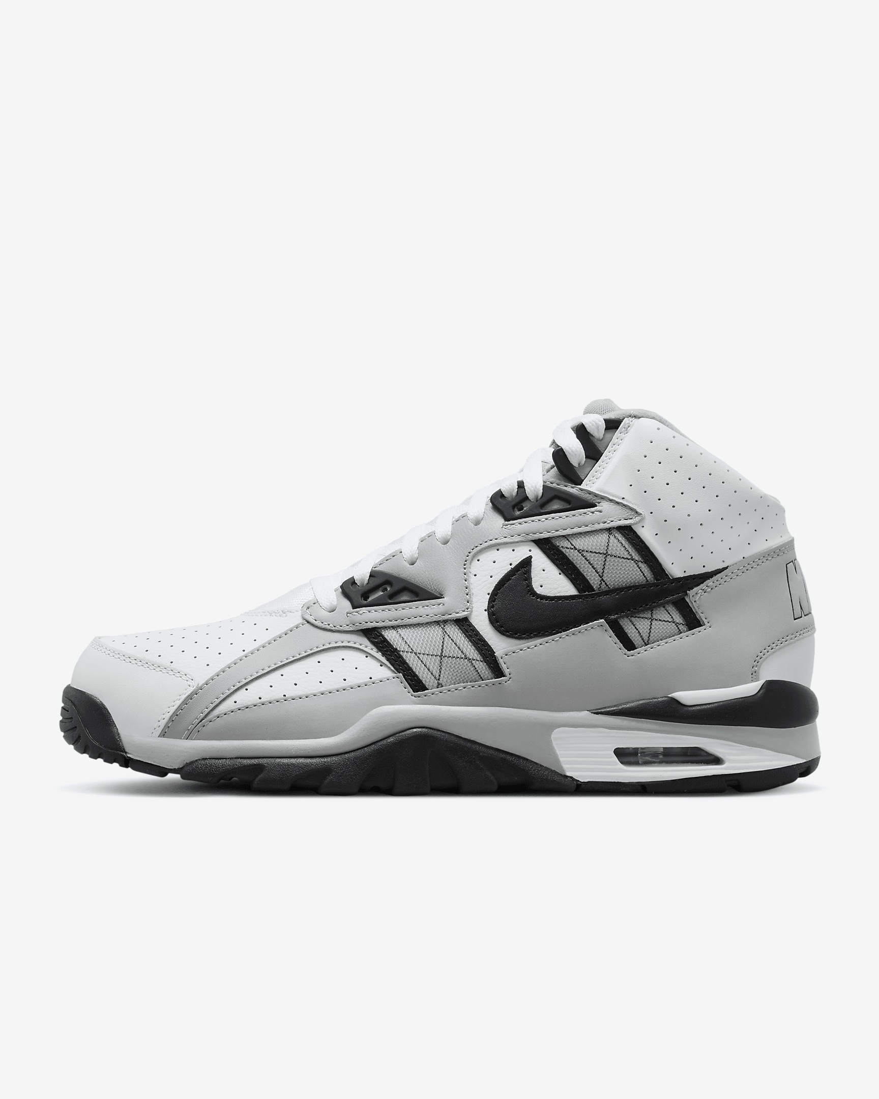 Turn heads wherever you go in Retro '90s style that's full of texture and clean color contrast. The high-top design of these kicks makes an unmistakable impression while Max Air units let you step out in legendary cushioning. Benefits - Real and synthetic leather is durable and easy to clean. - Plush and comfortable, Max Air cushioning has just the right amount of support. - Padded, high-top collar feels plush and structured. - Lightweight midsole offers soft, springy comfort. - Perforations add breathability. Product Details - Retro Nike block lettering on heel - Rubber outsole - Shown: White/Light Smoke Grey/Black - Style: HJ9106-100