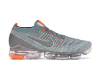 The Nike Air VaporMax Flyknit 3 Aviator Grey Metallic Pewter presents a hybrid silhouette in a Grey colorway adorned by modern footwear technologies such as Nike’s Flywire design. The iconic full-length VaporMax unit clads the transparent midsole of this Nike Air VaporMax Flyknit 3. Grey and orange hues appear on the studs on the underfoot. The sole features an aviator grey one-piece upper. It is constructed using the Flyknit technology, which results in a breathable woven finish. The vamp is mesh and well-aerated. On the quarters, vibrant orange accents on the Flywire eyelets disrupt the primary grey tint. The lateral side also features a dark grey Swoosh. The heel also features a two-tone color scheme, with an orange branded pull tab plastered on a Metallic Pewter-colored overlay. We love the elastic ribbed collar of the Nike Air VaporMax Flyknit 3 Aviator Grey Metallic Pewter, which allows these sneakers to fit like a sock. The shoe was released on May 1st, 2010, for $190. - Style AJ6900-003 - Colorway Aviator Grey/Vast Grey-Light Silver-Metallic Pewter - Retail Price 190 - Release Date 2019-05-01 - Featured false - Product Line Nike Air Max