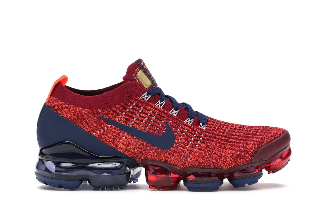 The Nike Air VaporMax Flyknit 3 Noble Red Blue Void is a low-top sneaker employing Flyknit 3 construction. These kicks stand out in noble red and blue void, and are laced with light armory blue. The Flyknit 3 Noble Red Blue Void uses Flyknit 3 stretchable material across its upper. The upper is finished in noble red across the visible yarn with blue void handling the embellishments. A Swoosh resides on the perimeters of the upper and flaunts a blue void colorway. The laces and tongue branding also retain the blue hue, with only the eyestays deviating to a white hue. To reinforce the breathable Flyknit, a plastic heel wrap is attached above the full-length VaporMax sole unit. A transition from noble red on the translucent sole to void blue completes the VaporMax design. What our experts love about the VaporMax Flyknit 3 Noble Red Blue Void is the VaporMax sole unit, which provides lightweight cushioning with energy regeneration. The sole returns energy to your foot with every stride, making them ideal for running. The Nike Air VaporMax Flyknit 3 Noble Red Blue Void was released on January 4, 2020, retailing for $200. - Style AJ6900-600 - Colorway Noble Red/Blue Void-Light Armory Blue - Retail Price 200 - Release Date 2020-01-04 - Featured false - Product Line Nike Air Max