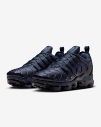 The Nike Air VaporMax Plus looks to the past and propels you into the future. Nodding to the 1998 Air Max Plus with its floating cage, padded upper and heel logo, it adds revolutionary VaporMax Air technology to ramp up the comfort and create a modern look. Benefits - Floating plastic cage on upper mimics beach-inspired design of Air Max Plus to root these sneakers in heritage Nike style. - VaporMax Air technology provides ultralightweight cushioning. - Synthetic upper adds lightweight comfort and durability. - Rubber pods in high-wear areas of outsole add traction and durability. Product Details - Pull tab on heel - Foam midsole - Shown: Thunder Blue/Midnight Navy/Cool Grey - Style: IM2371-437