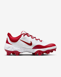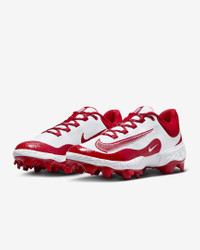 Let the baseball world know what kind of bat-wielding beast you are. The midsole has Nike React technology, perfect for sprinting around the bags or robbing your opponent of extra bases. The plush, breathable upper helps secure your foot without adding any unnecessary weight. Plus, the grippy traction is tailor-made for all-out effort plays. More Benefits - Internal webbing and updated mesh provide lightweight, breathable support and containment. - Layers of breathable mesh and strategically placed overlays give you a secure fit. Product Details - Shown: White/University Red - Style: FD6255-105