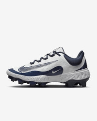 Let the baseball world know what kind of bat-wielding beast you are. The midsole has Nike React technology, perfect for sprinting around the bags or robbing your opponent of extra bases. The plush, breathable upper helps secure your foot without adding any unnecessary weight. Plus, the grippy traction is tailor-made for all-out effort plays. More Benefits - Internal webbing and updated mesh provide lightweight, breathable support and containment. - Layers of breathable mesh and strategically placed overlays give you a secure fit. Product Details - Shown: White/Midnight Navy - Style: FD6255-107