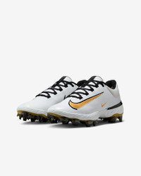 Let the baseball world know what kind of bat-wielding beast you are. The midsole has Nike React technology, perfect for sprinting around the bags or robbing your opponent of extra bases. The plush, breathable upper helps secure your foot without adding any unnecessary weight. Plus, the grippy traction is tailor-made for all-out effort plays. More Benefits - Internal webbing and updated mesh provide lightweight, breathable support and containment. - Layers of breathable mesh and strategically placed overlays give you a secure fit. Product Details - Shown: White/Black/Metallic Gold - Style: FD6255-119