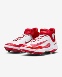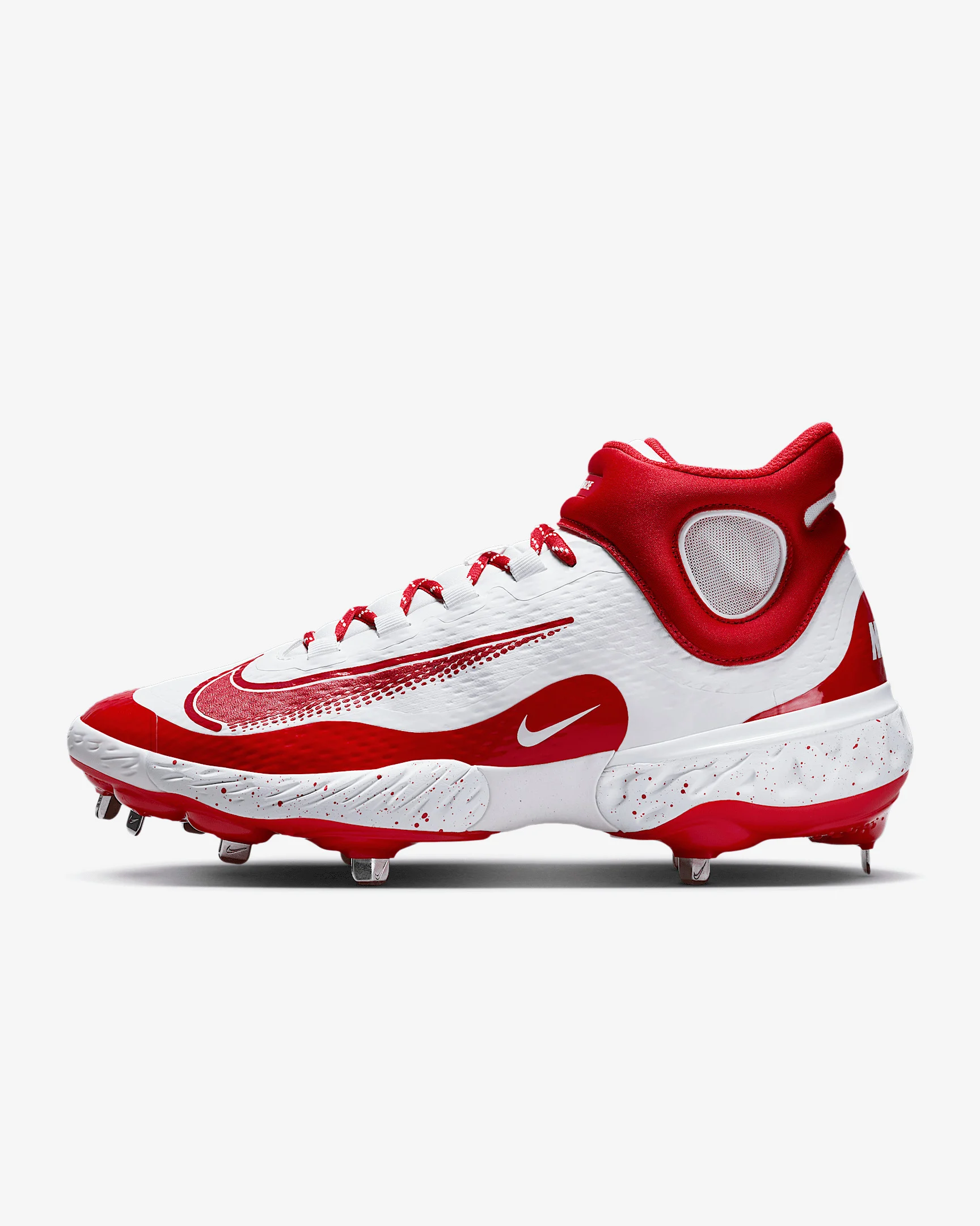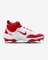 Let the baseball world know what kind of bat-wielding beast you are. The midsole has Nike React technology, perfect for sprinting around the bags or robbing your opponent of extra bases. The plush, breathable upper sports a strap that helps secure your foot without adding any unnecessary weight. Plus, the grippy rubber traction is tailor-made for all-out effort plays. More Benefits - Internal webbing and updated mesh provide lightweight, breathable support and containment. - Layers of breathable mesh and strategically placed overlays give you a secure fit. Product Details - Shown: White/University Red - Style: FD2744-106