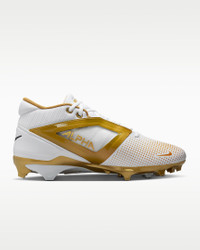 Whether you’re toting the rock or speeding by your defender, the Alpha Menace Pro 4 is primed for playmaking and pad pops. Better durability and breathability throughout the upper compared to the previous iteration complement a cleat capable of suddenness, stuffs and stands when it counts most. Product Details - Shown: White/Metallic Gold/Black - Style: FD7037-105