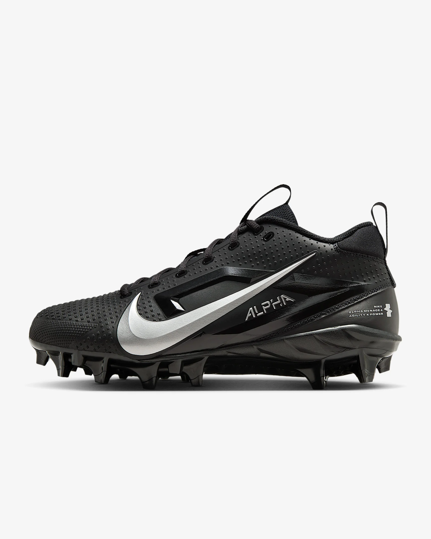 Built for burly thumpers and beastly wrecking balls thinking "pay dirt," the Alpha Menace 4 Varsity fits the bill. We brought back the Alpha Menace 2 underfoot technology that allows you to move naturally and softened the midsole, so you can cut and crush throughout practice or when it’s game time. Product Details - Shown: Black/Metallic Silver - Style: FN0027-002