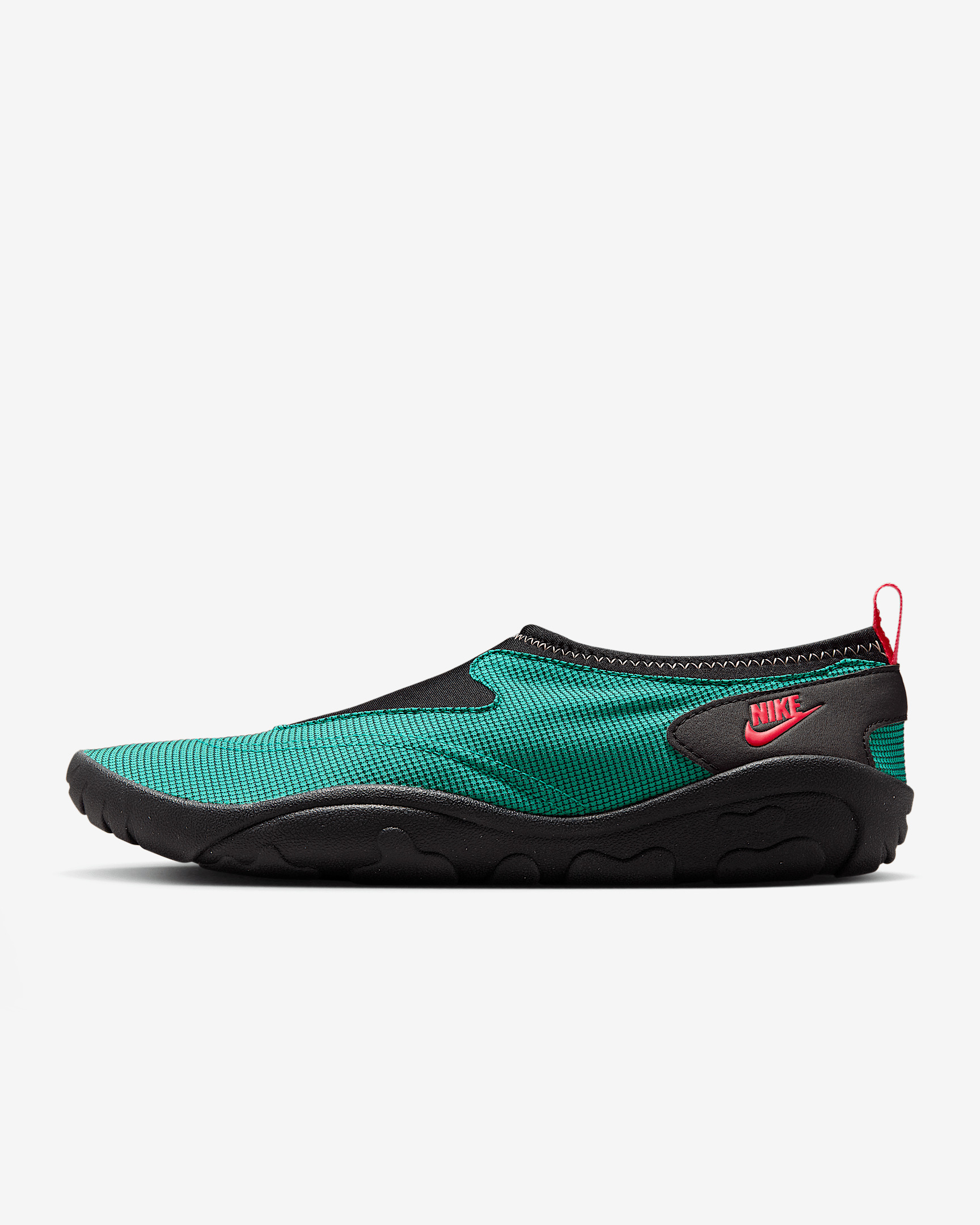 We reached into the archives and pulled out the low-profile, water-friendly Aqua Turf. The stretchy upper fits like a glove, giving you a barefoot feel while acting as a barrier. As for traction, it has a full rubber outsole for secure grip no matter the environment. Benefits - Stretchy upper hugs the foot to help minimize drag in water. - Neoprene-like collar allows for ease of entry and a sock-like fit. - Internal foam strobel provides just the right amount of cushioning. Product Details - Shown: Turbo Green/Black/Washed Coral/Team Scarlet - Style: FZ5627-301