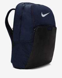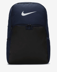 The Nike Brasilia Backpack gives you plenty of organized space to keep your gear in check and ready for your next adventure, even if that's just getting to and from school or the gym. The durable design is made to hold up for everyday use. This product is made with at least 50% recycled polyester fibers. Benefits - Zippered main compartment offers secure storage. - Densely woven polyester stands up to the bumps and scrapes of everyday transport. - Ventilated zip pocket on the front stores used gear away from your other things. - Internal laptop sleeve with organization panel helps keep your computer separate. - Padded, adjustable shoulder straps help you carry the pack comfortably. - Side pockets make it easy to grab water bottles and other items. Product Details - Haul loop at the top - 20"H x 13"W x 7"D - 30L - 100% polyester - Spot clean - Imported - Shown: Midnight Navy/Black/White - Style: DM3975-410