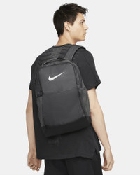 Grab your gear and get going with the Nike Brasilia Backpack. It has plenty of pockets to help you stay organized including a sleeve to fit your laptop, side mesh pockets for water bottles and a zippered pocket on the inside to keep small items secure. This product is made with at least 50% recycled polyester fibers. Benefits - Densely woven polyester stands up to the bumps and scrapes of everyday transport. - Zippered pocket on the front stores used gear separate from your other things. - Padded, adjustable shoulder straps let you carry the pack comfortably. Product Details - Haul loop at the top - Internal laptop sleeve - 18"H x 12"W x 7"D - 24 L - 100% polyester - Spot clean - Imported - Shown: Iron Grey/Black/White - Style: DH7709-068