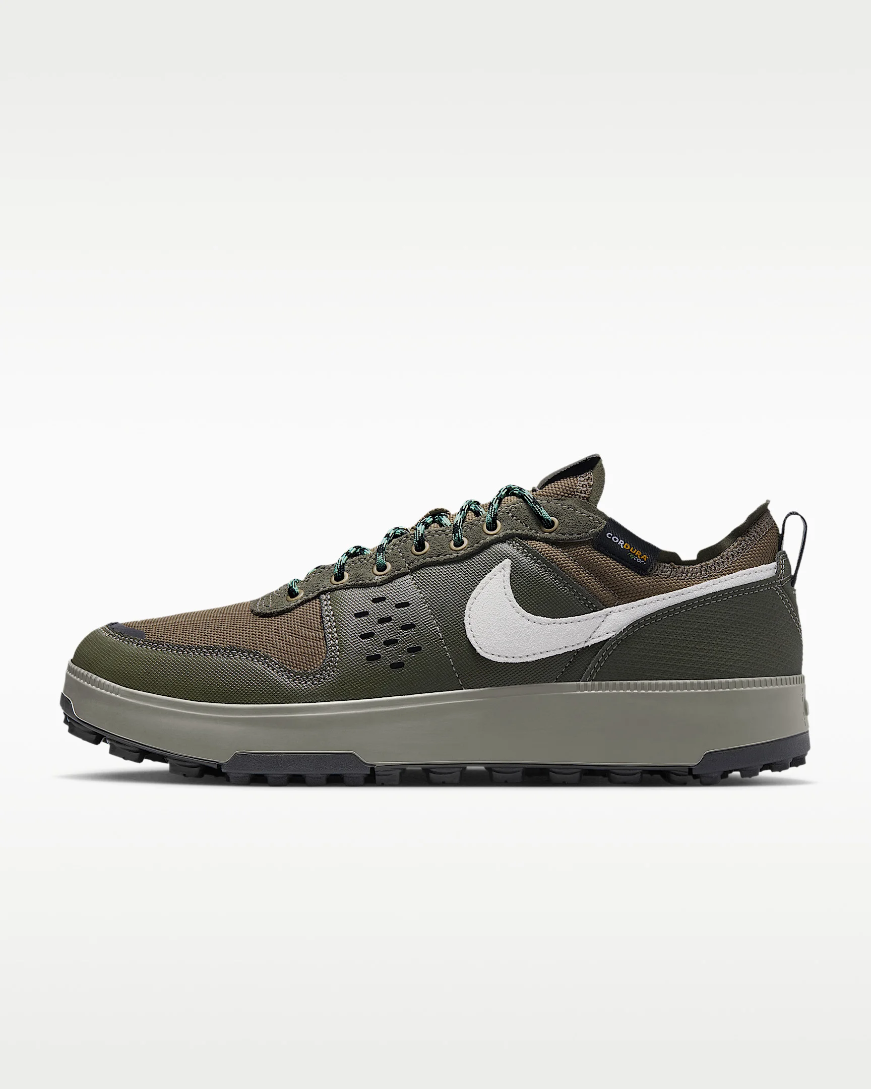 Nike C1TY is engineered to overcome anything the city throws your way. A mesh upper keeps the shoe breathable, while the reinforced sides and toe box help protect your feet from the elements. This shoe gives street style a whole new meaning. Benefits - With a reinforced rubber sidewall and rugged toe box, the breathable upper pairs suede and mesh to help keep you cool under pressure. - Cupsole construction and flexible foam work together to provide round-the-clock comfort and support. - Dual-stiffness Waffle outsole with rubber lugs delivers supreme grip across all city surfaces. Product Details - Foam midsole - Rubber outsole - Shown: Cargo Khaki/Medium Olive/Light Army/Spruce Aura - Style: IM4692-300