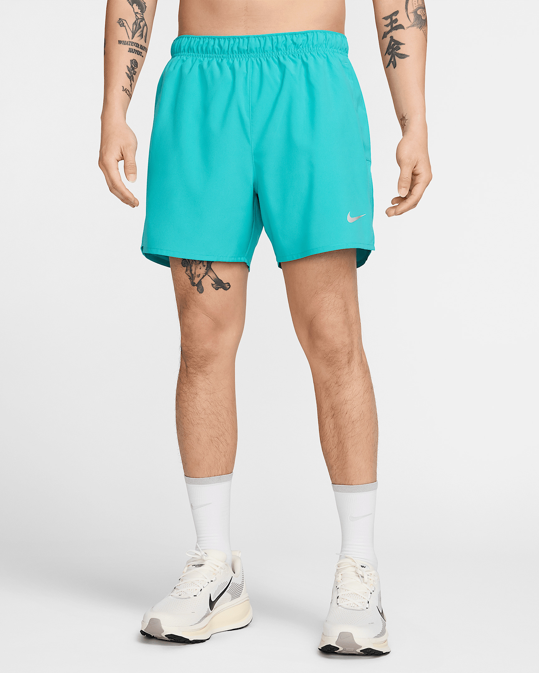 Designed for running, training and yoga, the 5" Challenger shorts are a workout staple. Lightweight and breathable, they have a 2-in-1 design featuring a spandex inner short. More Benefits - Designed for Running, Yoga and Training - Length: 5" - Liner: Built-in inner shorts - Fabric: Lightweight woven - Storage: Side pockets and back pocket - Waistband: Narrow with drawcord Product Details - Reflective Swoosh logo - Shorts: 100% polyester. Tight/Tight center front lining: 92% polyester/8% spandex. - Machine wash - Imported - Not intended for use as Personal Protective Equipment (PPE) - Shown: Dusty Cactus/Dusty Cactus/Dusty Cactus - Style: HJ3588-345 SIZE & FIT Model is wearing size M and is 6′0″183cm Standard fit: easy and traditional