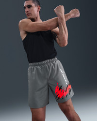 Built for running, training and yoga, these 7” performance shorts are a workout wardrobe staple. Their lightweight woven fabric is equipped with sweat-wicking Dri-FIT technology to help you stay light and dry. More Benefits - Designed for Running, Yoga and Training - Length: 7" - Liner: Brief - Fabric: Lightweight woven - Storage: Side pockets and hook-and-loop back pocket - Waistband: Narrow with drawcord Product Details - Body: 100% polyester. Lining: 92% polyester/8% spandex. - Machine wash - Imported - Shown: Smoke Grey - Style: HV2138-084 SIZE & FIT Model is wearing size M and is 6′2″188cm Standard fit: easy and traditional