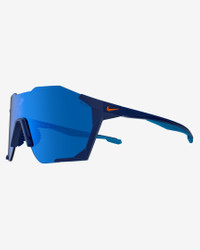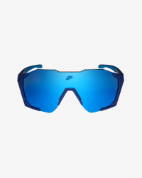 Take your elevated sport style to the streets in the Nike Charged Shield. The futuristic edge detail energizes your look, offering an expansive field of vision for a vast perspective. Designed with minimalism in mind, it features grip zones at the nosepad and temples to ensure a secure, locked-in feel. Benefits - Nike Max + helps reduce light reflection and provides precise vision from all angles. - 5-base curved shield offers medium coverage with moderate peripheral light blockage - Soft, injected rubber inlay nose pads provide stability and grip Product Details - Injected frame material is derived from at least 40% castor bean oil - 100% UVA/UVB protection - Lens Width 61mm – Bridge Width 18mm – Temple Length 140mm - Shown: Blue Void/Blue - Style: IB3518X-492