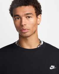 Go big on comfort with this spacious Club Fleece crew. This midweight French terry fabric (with unbrushed loops on the inside) gives structure, breathability and softness—so it's just as ready for the gym as it is for the couch. Dropped shoulders, longer sleeves and room through the body offer plenty of room for movement and layering. Product Details - Embroidered Nike Futura logo at left chest - Ribbed hem, collar and cuffs - 100% cotton - Machine wash - Imported - Shown: Black/Black/White - Style: HJ1819-010 SIZE & FIT Model is wearing size M and is 5′11″180cm Big & Tall model is wearing size 3XL and is 6'3"191cm Oversized fit: exaggerated and spacious