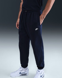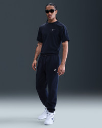 Clean meets casual with these classic sweats. Our midweight brushed fleece feels extra soft on the inside and smooth on the outside. Benefits - The standard fit feels relaxed through the seat and thighs, and tapers towards the ankle. - An elastic waistband and external drawcord deliver a comfortable, custom fit at your waist. - The snap closure back pocket and hand pockets fit most phones. Product Details - Embroidered Nike Futura logo - Body: 80-81% cotton/19-20% polyester. Side pocket knuckle side/Back pocket: 100% cotton. - Material percentages may vary. Check label for actual content. - Machine wash - Imported - Shown: Obsidian/Obsidian/White - Style: FN3808-451 SIZE & FIT Model is wearing size M and is 6′1″185cm Standard fit: easy and traditional