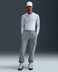 Clean meets casual with these brushed fleece cargo pants. Smooth on the outside, super soft on the inside, they deliver comfort you can count on. Benefits - The standard fit feels relaxed through the seat and thighs. - The snap closure back welt pocket and hand pockets fit most phones. Product Details - Embroidered Nike Futura logo - Elastic waistband and round drawcord - Body: 67-81% cotton/19-33% polyester. Side pocket knuckle side: 100% cotton. Back pocket: 100% cotton. - Material percentages may vary. Check label for actual content. - Machine wash - Imported - Shown: Dark Grey Heather/Light Smoke Grey/White - Style: FN3805-063 SIZE & FIT Model is wearing size M and is 6′2″188cm Big & Tall model is wearing size 3XL and is 6'6"198cm Standard fit: easy and traditional