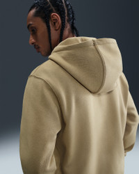 Clean meets casual with this classic hoodie. Smooth on the outside, super soft on the inside, this brushed fleece sweatshirt delivers comfort you can count on. Benefits - Our midweight brushed fleece feels extra soft on the inside and smooth on the outside, helping you stay cozy while keeping its structured shape. - The standard fit is designed to feel relaxed through the body for easy layering. - Double-layer hood has a round braided drawcord to make finding the right fit a cinch. Product Details - Embroidered Nike Futura Logo - Divided pouch pocket - Ribbed hem and cuffs - Metal Zipper - Body: 67-80% cotton/20-33% polyester. Hood lining: 67-80% cotton/20-33% polyester. - Material percentages may vary. Check label for actual content. - Machine wash - Imported - Shown: Parachute Beige/Parachute Beige/White - Style: FN3861-297 SIZE & FIT Model is wearing size M and is 6′1″185cm Standard fit: easy and traditional