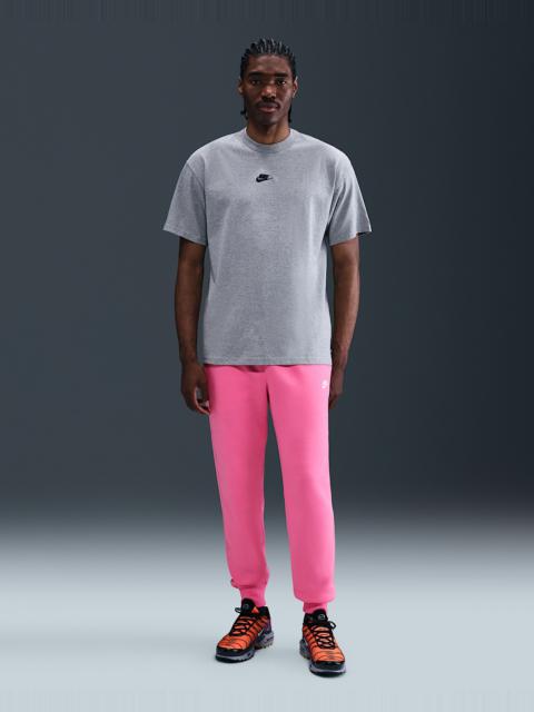 Clean meets casual with these classic joggers. Our midweight brushed fleece feels extra soft on the inside and smooth on the outside. Benefits - Their standard fit feels relaxed through the seat and thighs and tapers towards the ankle. - An elastic waistband and external drawcord deliver a comfortable, custom fit at your waist. - The snap closure back welt pocket and hand pockets fit most phones. Product Details - Embroidered Nike Futura logo - Body: 67-81% cotton/19-33% polyester. Side pocket knuckle side/Back pocket: 100% cotton. - Material percentages may vary. Check label for actual content. - Machine wash - Imported - Shown: Green Abyss/Green Abyss/White - Style: FN3787-301 SIZE & FIT Model is wearing size M and is 6′1″185cm Standard fit: easy and traditional