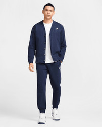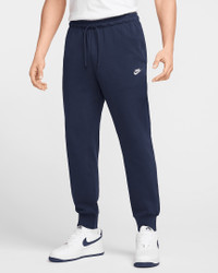 East to style and comfortable to wear, our Nike Club knit joggers are ready to become a versatile piece of your casual wardrobe. The relaxed fit is designed to give you a bit of room through the seat and thighs. The slight taper and ribbed ankle cuffs keep it clean around your sneakers. Pull them on with a tee or your favorite hoodie for casual, everyday wear. Benefits - Soft knit fabric feels smooth and lightweight for all-day comfort. - Stretchy elastic waist with external drawcord lets you find the right fit. - Ribbed ankle cuffs give you a clean look that highlights your kicks. Product Details - Hand pockets - Embroidered Nike Futura logo at left thigh - Body: 100% cotton. Rib: 98% cotton/2% spandex. - Machine wash - Imported - Shown: Obsidian/White - Style: FQ4330-451 SIZE & FIT Standard fit: easy and traditional