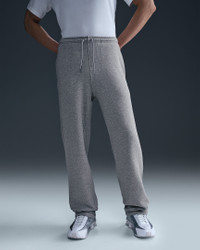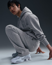 Clean meets casual with these open-hem sweatpants. Our midweight brushed fleece feels extra soft on the inside and smooth on the outside, helping you stay cozy while keeping its structured shape. Benefits - The standard fit feels relaxed through the seat and thighs. - The straight leg has an open hem to rest over your shoes. - The snap closure back welt pocket and hand pockets fit most phones. Product Details - Embroidered Nike Futura logo - Elastic waistband with external drawcord - Body: 80-81% cotton/19-20% polyester. Side pocket knuckle side: 100% cotton. Back pocket: 100% cotton. - Material percentages may vary. Check label for actual content. - Machine wash - Imported - Shown: Dark Grey Heather/Light Smoke Grey/White - Style: FN3730-063 SIZE & FIT Model is wearing size M and is 6′3″189cm Big & Tall model is wearing size 2XL and is 6'2"188cm Standard fit: easy and traditional
