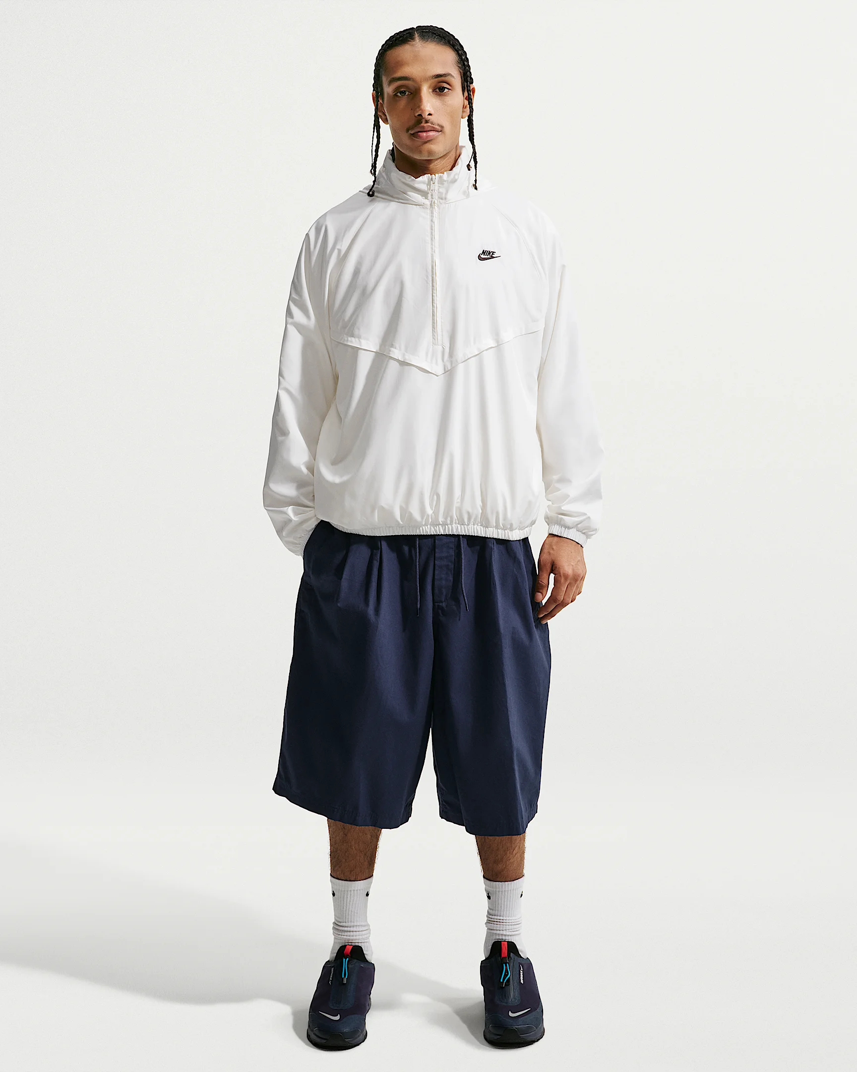 Elevate your essentials with these woven shorts. Their oversized fit paired with pleats delivers clean, classic style with the comfort of Nike Club. Benefits - An elastic waistband and round external drawcord create a comfortable, custom fit at your waist. - The oversized fit is extra roomy through the seat and thighs. Product Details - Embroidered Nike Futura logo - Zipper fly - Button closure - Knee length - 100% cotton - Machine wash - Imported - Shown: Obsidian/Obsidian - Style: HJ2540-451 SIZE & FIT Oversized fit: exaggerated and spacious
