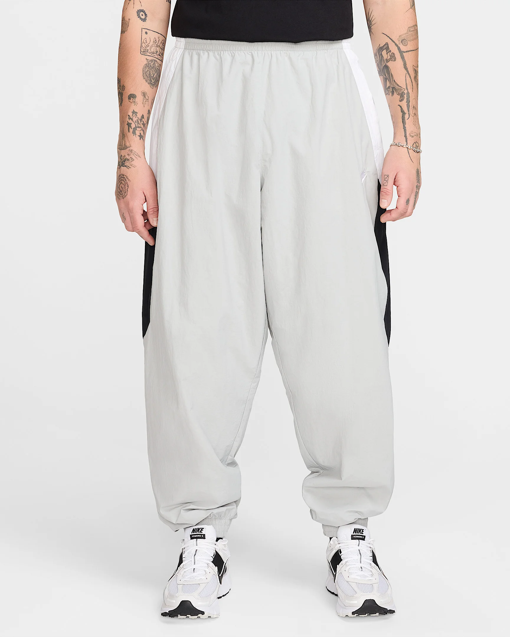 Get a comfortable, sport-inspired look with these oversized lightweight pants. They're extra roomy through the seat and thighs with a cuff at the ankle for a clean finish. Product Details - Embroidered Nike Futura logo - Hand pockets - Body: 100% nylon; Lining: 100% polyester. - Machine wash - Imported - Shown: Light Smoke Grey/White/Black/White - Style: HQ6114-077 SIZE & FIT Model is wearing size M and is 6′0″183cm Oversized fit: exaggerated and spacious