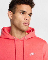 Clean meets casual with this classic hoodie. Our midweight brushed fleece feels extra soft on the inside and smooth on the outside, helping you stay cozy while keeping its structured shape. Product Details - Embroidered Nike Futura Logo - Double-layer hood - Round braided drawcords - Pouch Pocket - Ribbed hem and cuffs - Body: 67-81% cotton/19-33% polyester. Hood lining: 67-81% cotton/19-33% polyester. - Material percentages may vary. Check label for actual content. - Machine wash - Imported - Shown: Magic Ember/Magic Ember/White - Style: FN3859-814 SIZE & FIT Model is wearing size M and is 6′3″191cm Big & Tall model is wearing size 3XL and is 6'6"198cm Standard fit: easy and traditional