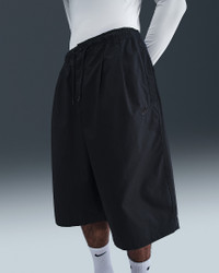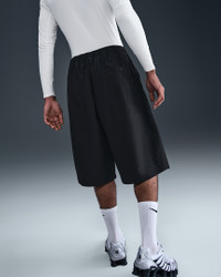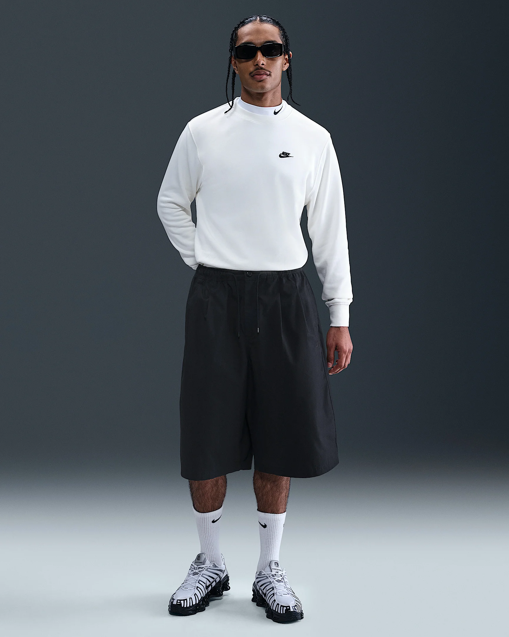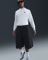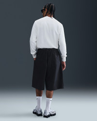 Elevate your essentials with these woven shorts. Their oversized fit paired with pleats delivers clean, classic style with the comfort of Nike Club. Benefits - An elastic waistband and round external drawcord create a comfortable, custom fit at your waist. - The oversized fit is extra roomy through the seat and thighs. Product Details - Embroidered Nike Futura logo - Zipper fly - Button closure - Knee length - 100% cotton - Machine wash - Imported - Shown: Black/Black - Style: HJ2540-010 SIZE & FIT Model is wearing size M and is 6′1″185cm Oversized fit: exaggerated and spacious