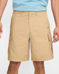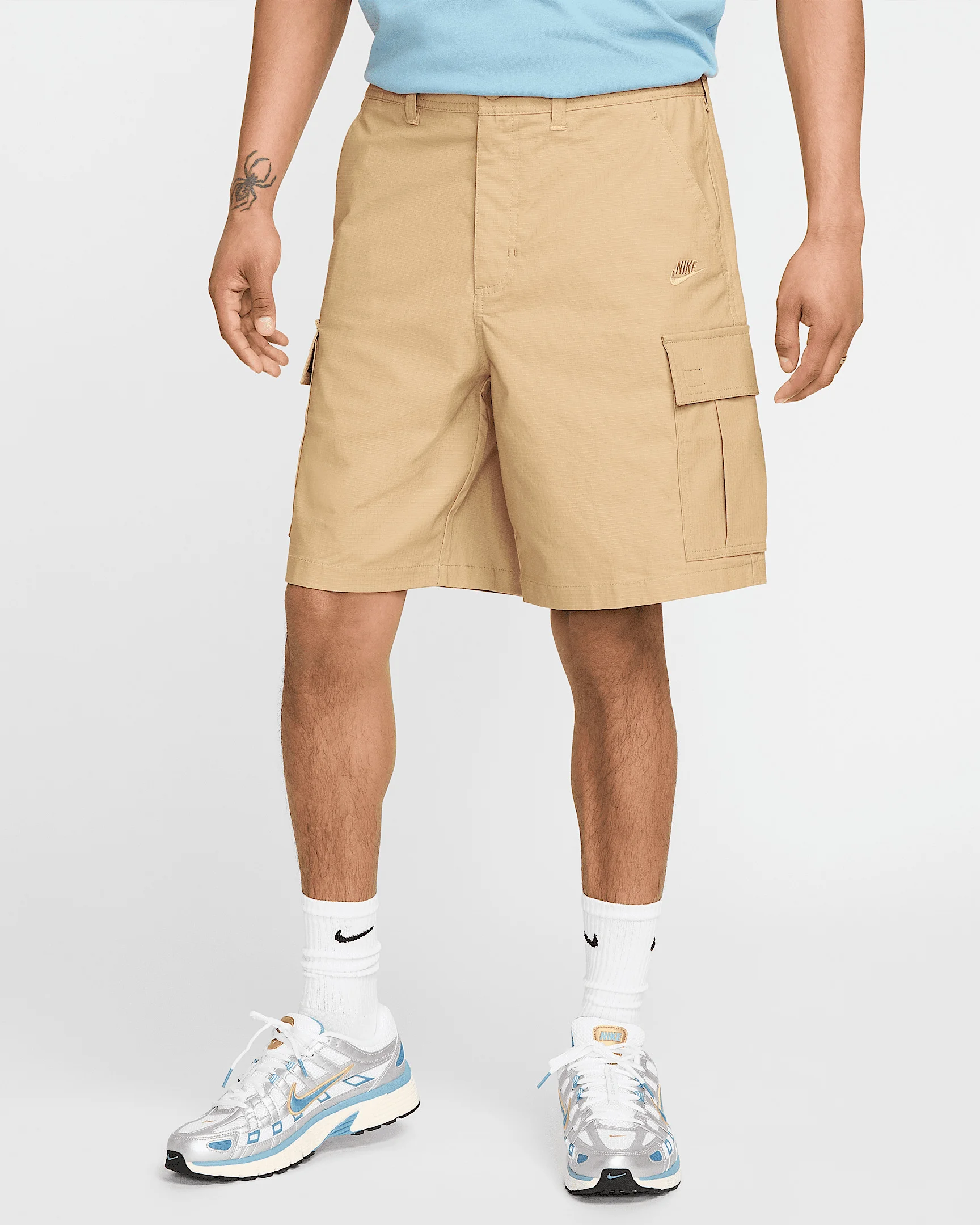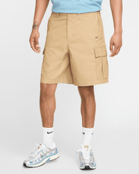 Made with durable ripstop fabric, these cargo shorts from our Nike Club collection bring a little extra storage and style to your shorts game. Pull these on with a tee or hoodie and your favorite Nike sneakers for a classic look. Benefits - Durable cotton ripstop feels lightweight and has a bit of spandex for stretch. - Designed to feel relaxed through the seat and thighs for casual wear. - Cargo side pockets with hook-and-loop closure give you plenty of extra space to securely store your things. Product Details - Zippered fly with button closure - Hand pockets and slip-in back pockets - Body: 97% cotton/3% spandex. Pocket Bags: 87% polyester/13% cotton. - Machine wash - Imported - Shown: Parachute Beige/Parachute Beige - Style: FN3517-297 SIZE & FIT Model is wearing size 32 and is 6′1″185cm Standard fit: easy and traditional
